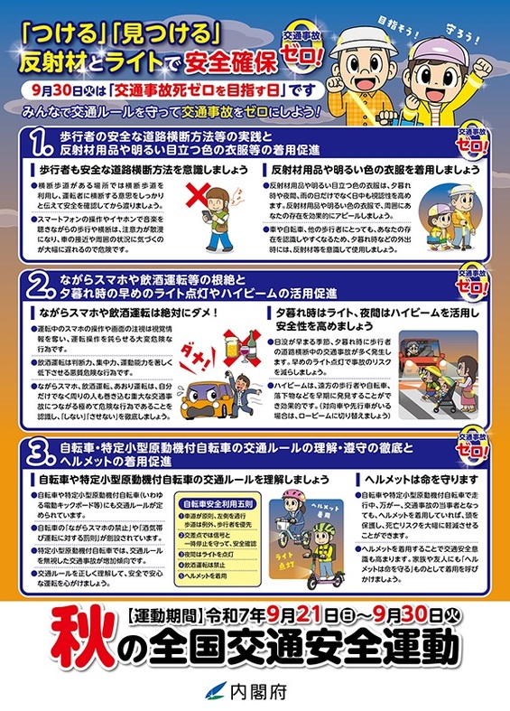 〇交通事故死ゼロを目指す日 令和7年9月30日(木)